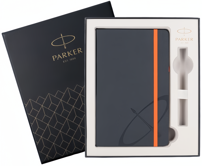Подарочная коробка Parker с блокнотом от официального дилера Parker в Тольятти. Вы можете дополнительно заказать гравировку, которая подчеркнет Вашу оригинальность и придаст памятность статусному подарку. Все ручки Паркер поставляются в фирменном футляре.